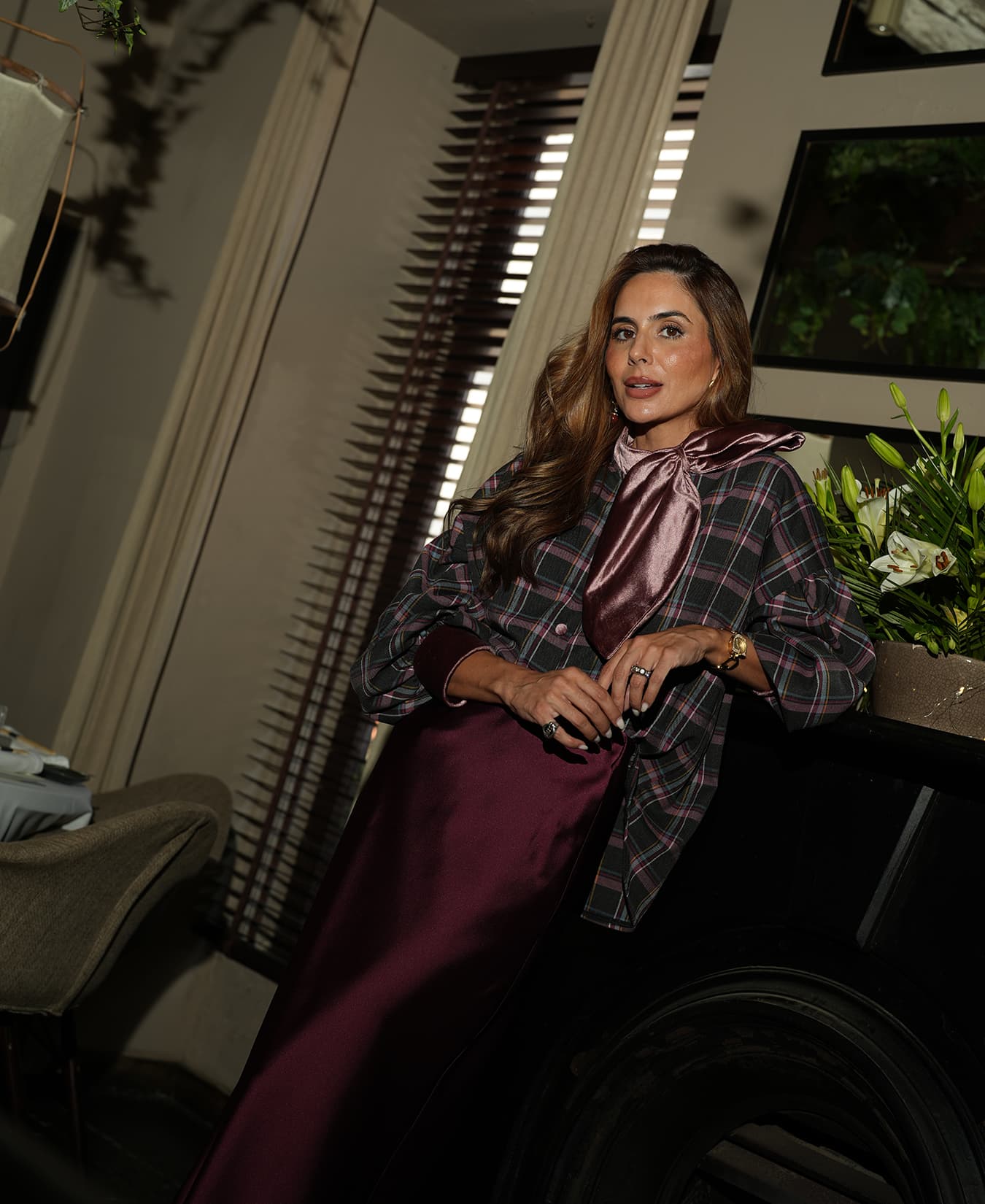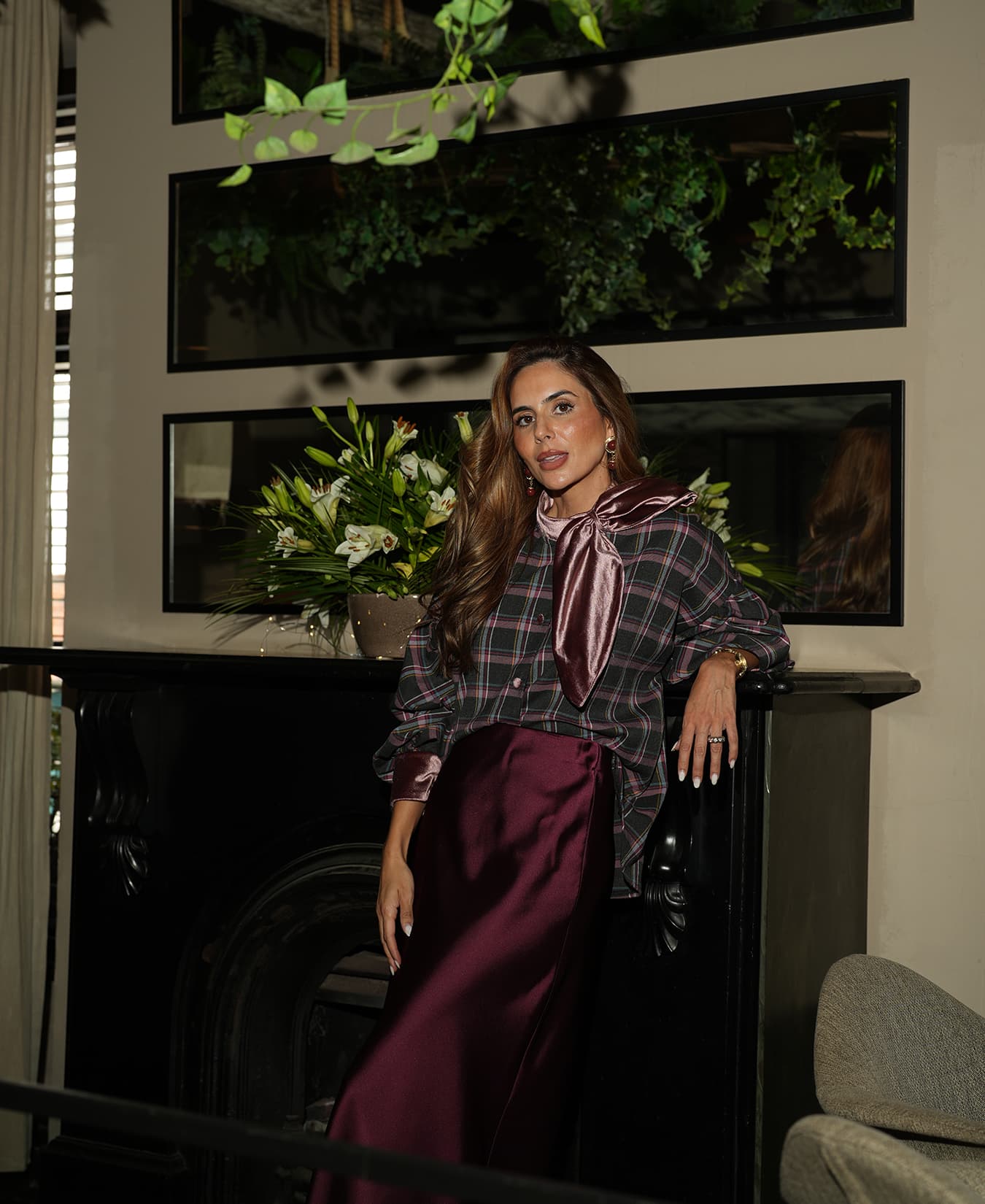 Desenhada para momentos especiais, combina feminilidade, conforto e sofisticação num só look. O padrão tartan (mais sobre o tecido da estação aqui), em tons suaves de cinza, rosa, burgundy e azul-bebé, traz um toque clássico com um twist contemporâneo.
